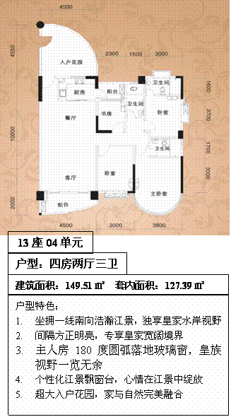 Ganden Riveia located in the north west side of the main entrance of the village, the project area of 50,000 ㎡, with a total construction area of about 140,000 ㎡, the overall plan for 860 sets of units, 16 from 12 to 18 small-house high-level elevator, the rate of Green 42 %. Singapore-floor, using modern architectural design style blue and white in order to carry out the overall layout of the Weihe Shi, with the unique resources of Riverview and fine workmanship of the garden, perfect to create a "Guangzhou in the West Bank, two of the new sand," said Island of the human community living
